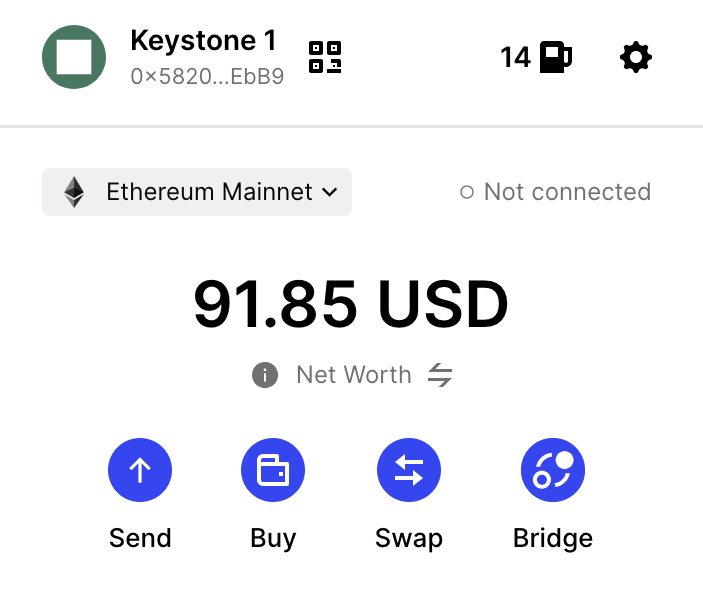 Keystone, as a hardware wallet, secures your assets, and all transactions after binding require Keystone's signature. Plus, you can explore and use various online features in BlockWallet to meet your basic needs.