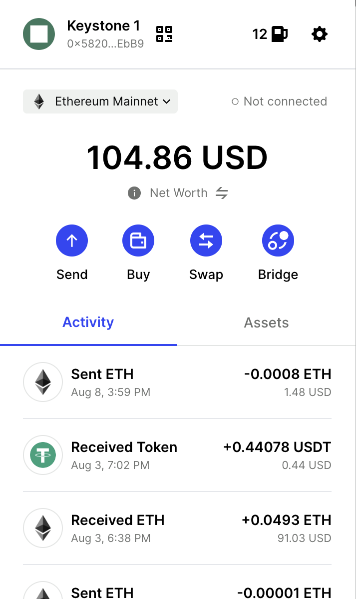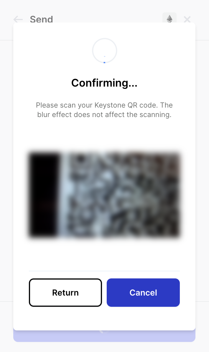 Return to BlockWallet, scan the QR code on your Keystone, and your transaction is pending confirmation on the Ethereum blockchain.