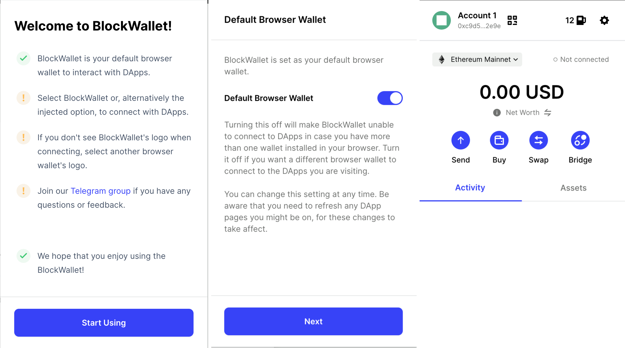 Use the Default Browser Wallet and start using BlockWallet. This completes your successful login.