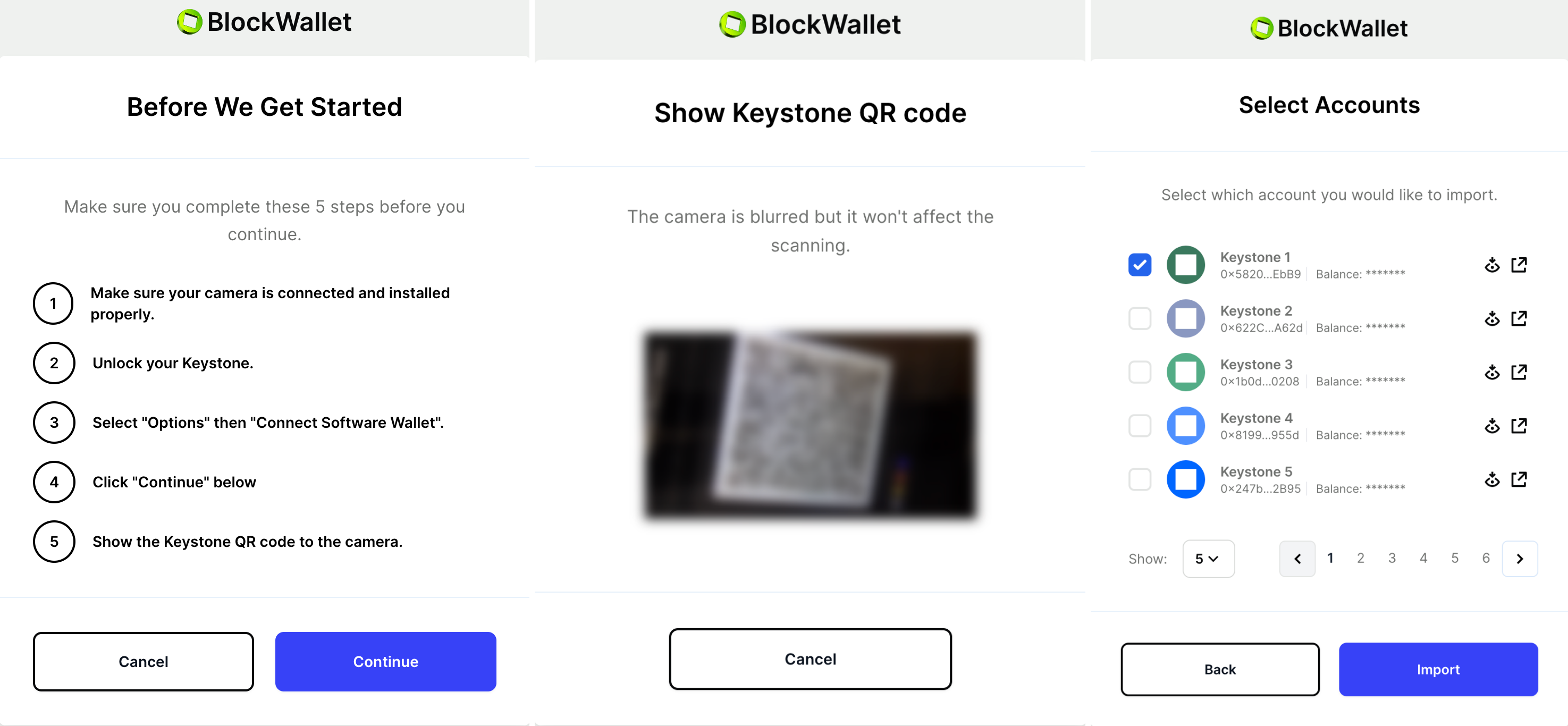 Now, let's establish the connection between your Keystone hardware wallet and BlockWallet: