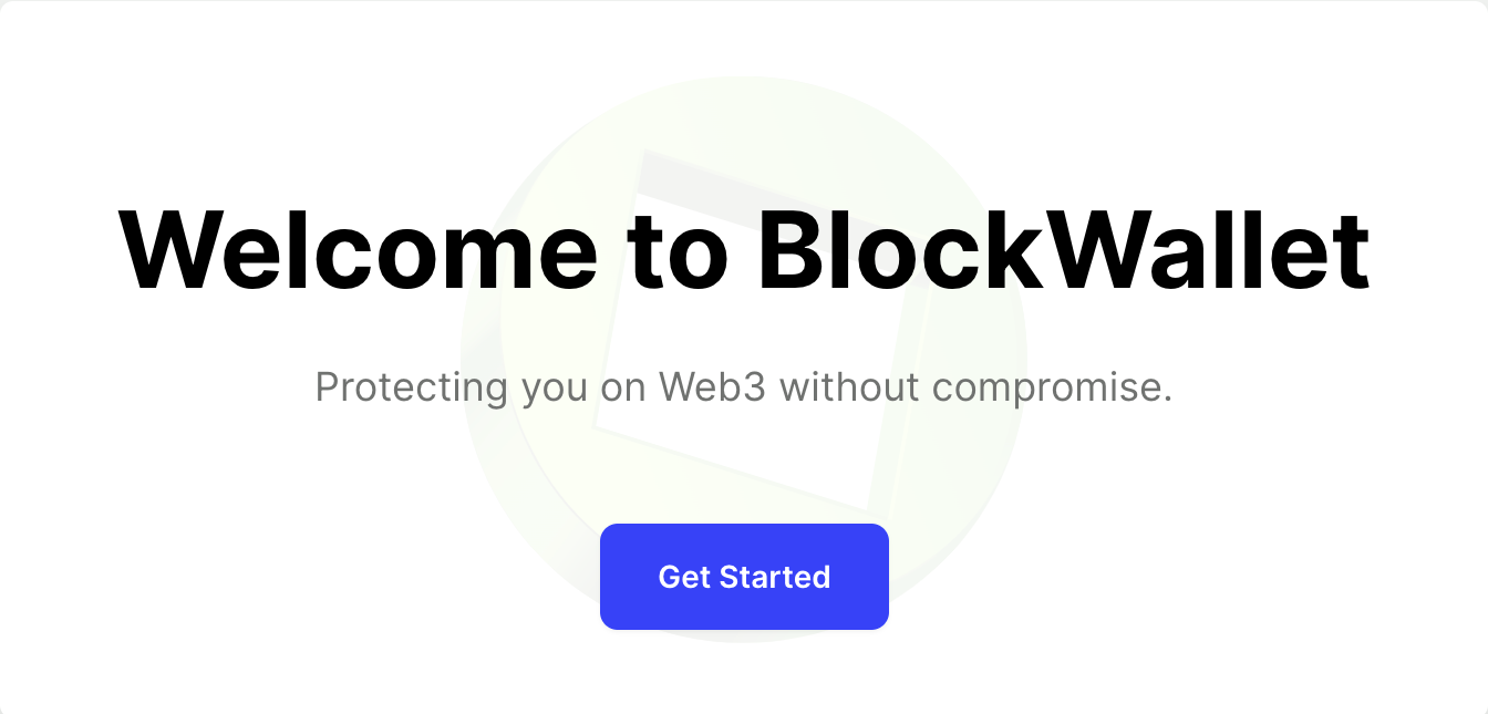 Open the "BlockWallet Extension" in your browser and click [Get Started].