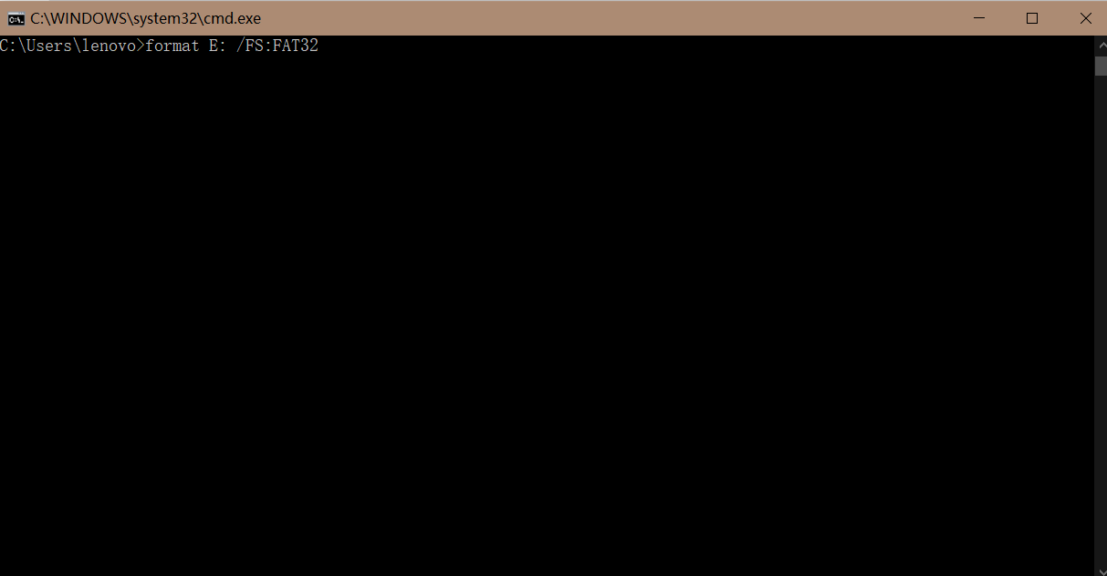format [drive letter]: /FS:FAT32. Replace[drive letter]with thedrive letter for your MicroSD card (likeformat E: /FS:FAT32).