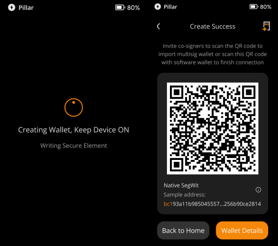 Wait for the wallet creation, please keep the device on, the device is writing to the secure chip.