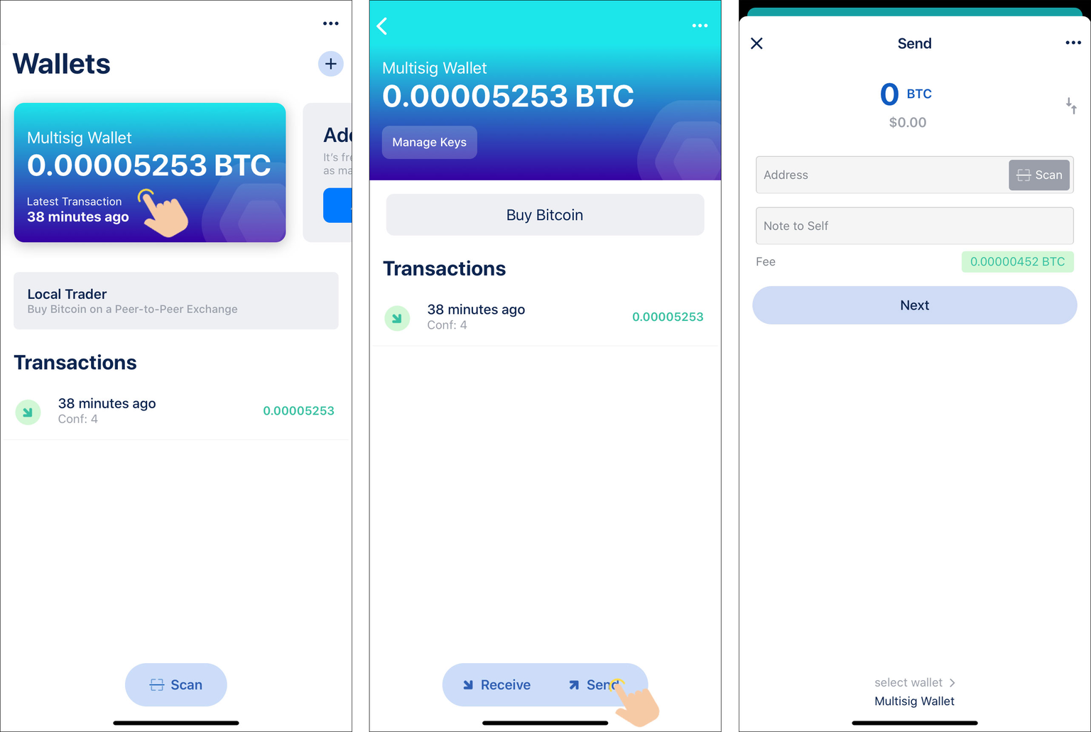 Step Six: Send BTC from the 2/3 Multisig wallet