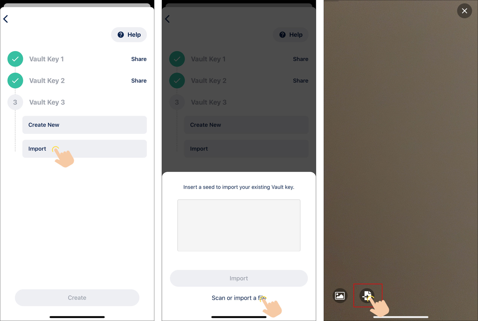 Click [Add Wallet] > Set a new wallet name > [Vault] > [Create] > [Get Started], enter the import multi-signature key page.