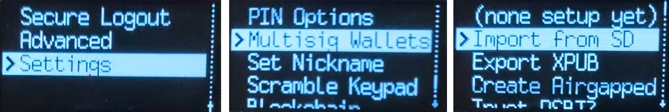 - Upgrade Coldcard firmware version to V2.1.0 or later, as the third multi-signature participant 3/3.