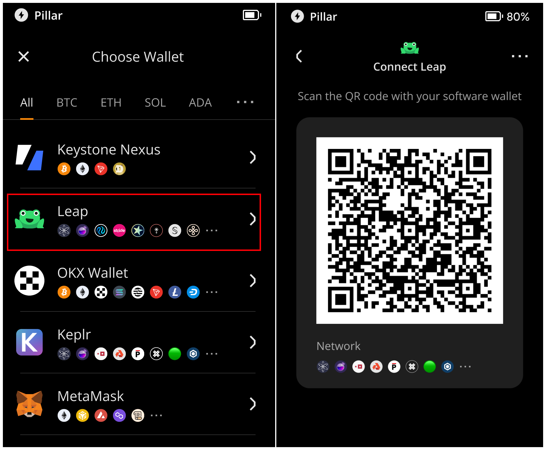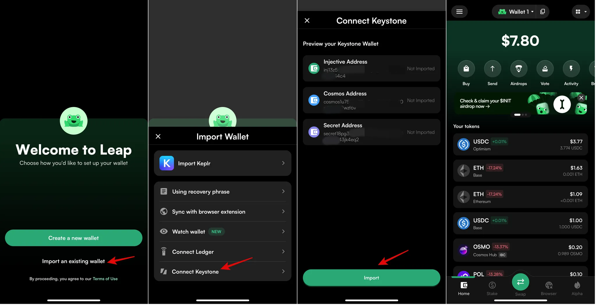 Connecting Keystone with Leap Wallet