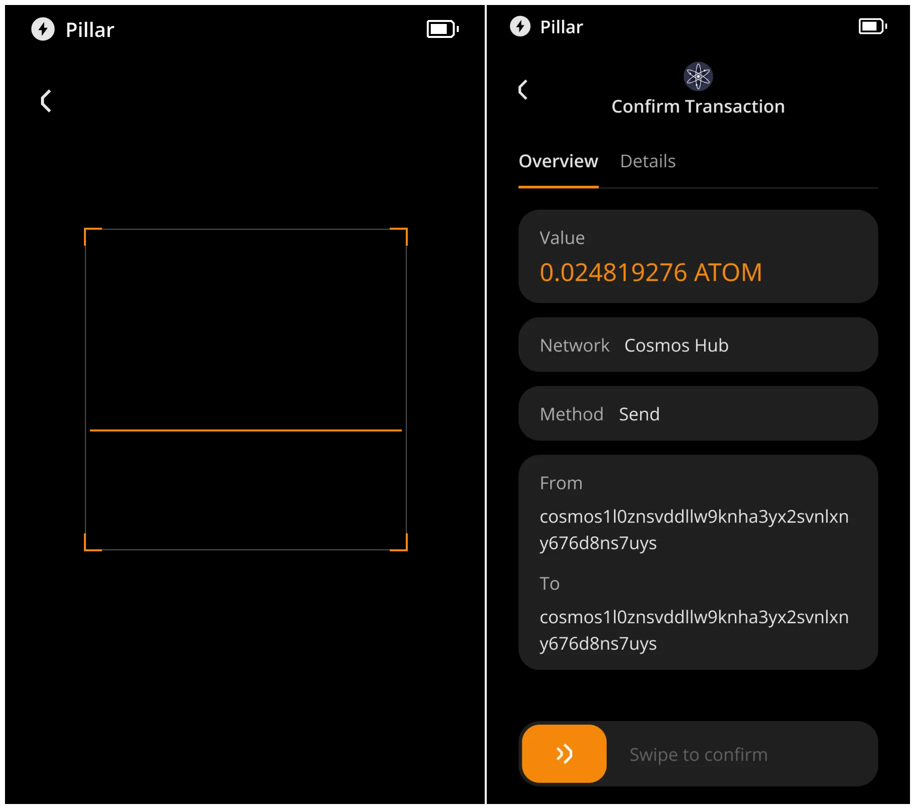 Use your Keystone to scan the QR code shown on Leap Wallet. Review the transaction details and Confirm.