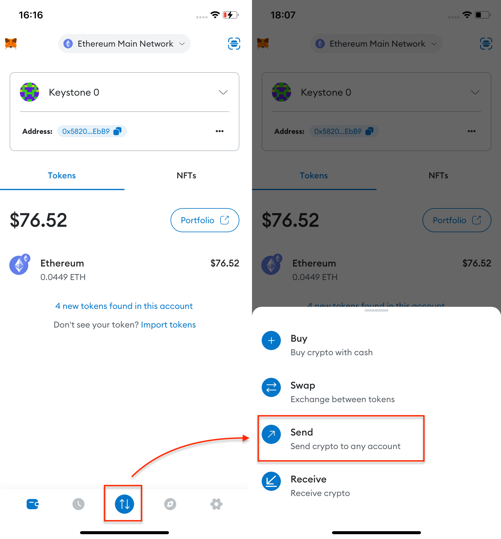 Once you've connected Keystone with MetaMask, you can do more than just send currency easily. You can still access all of MetaMask's features.