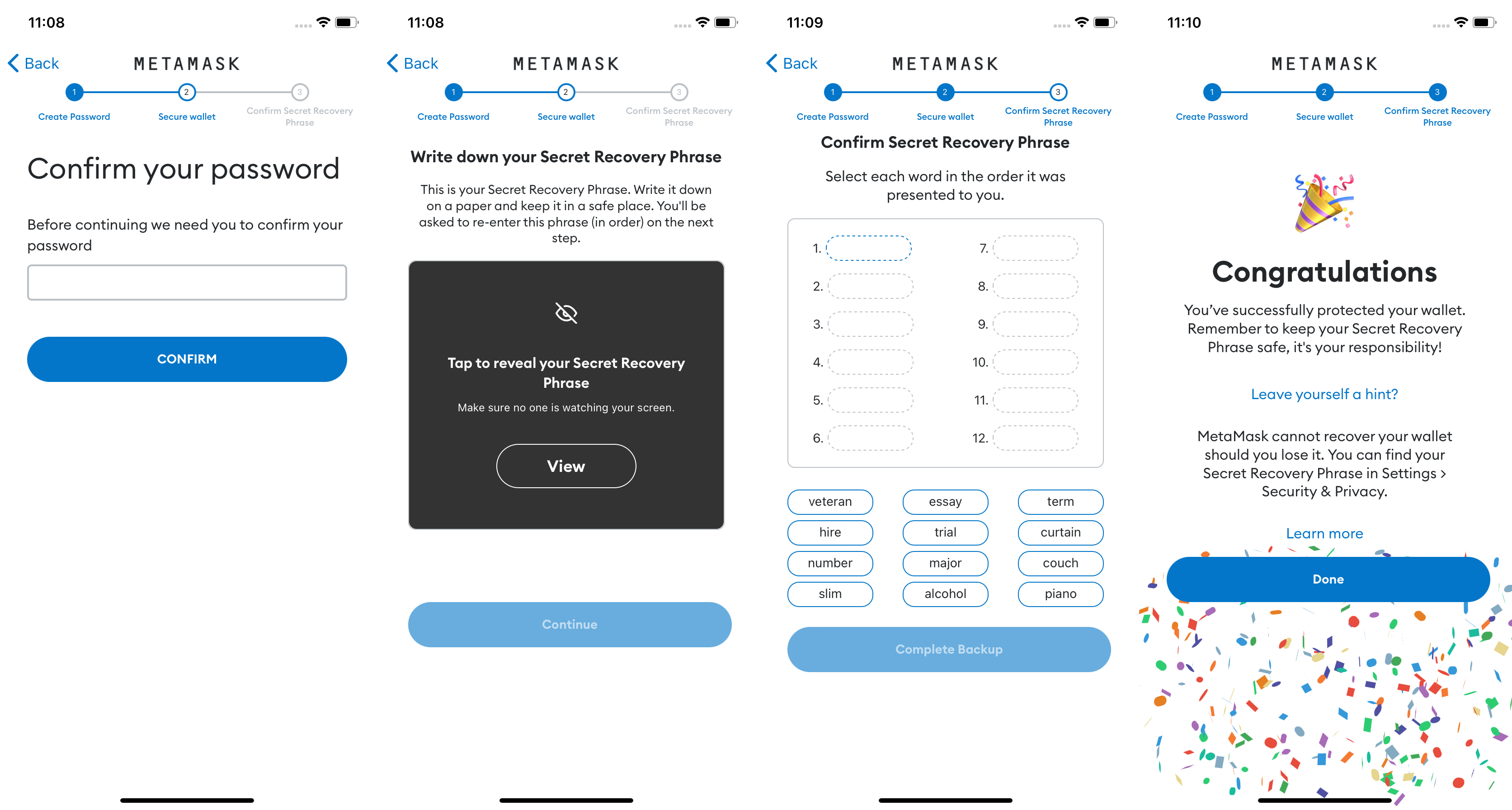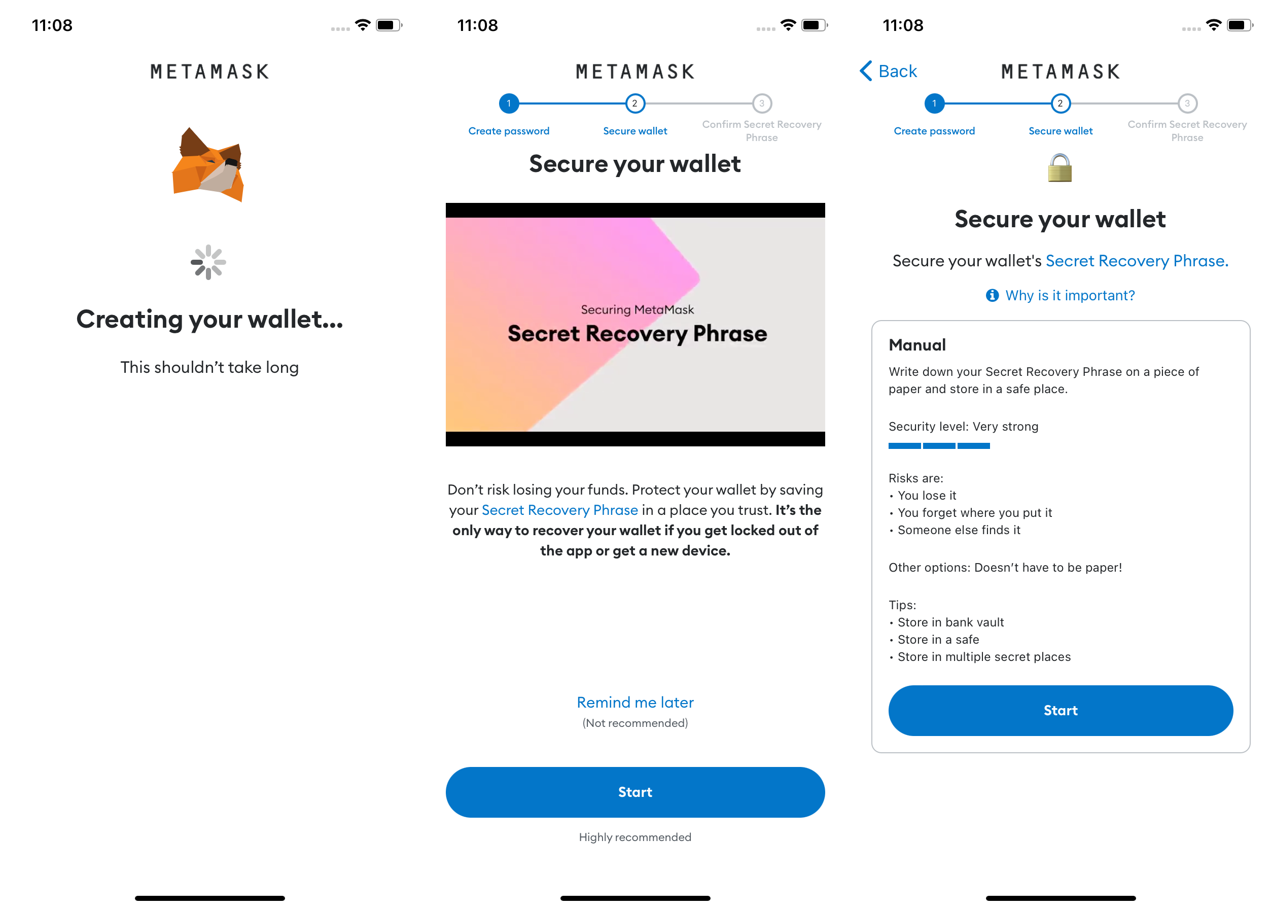 Proceed with the "Secure your wallet" process and read the notes carefully.