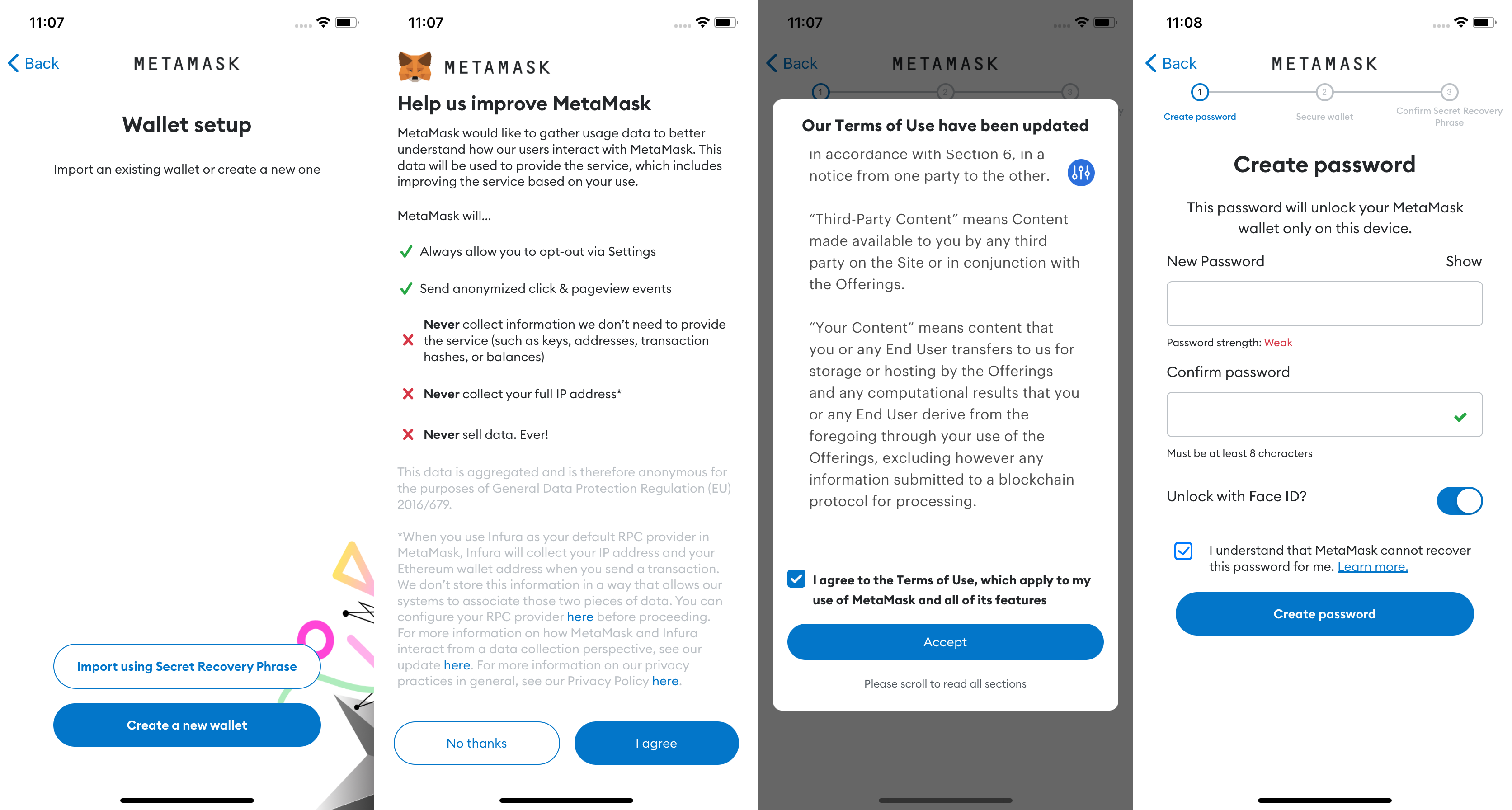 Congratulations! You have successfully set up MetaMask Mobile. Take some time to explore the various functions and features available.
