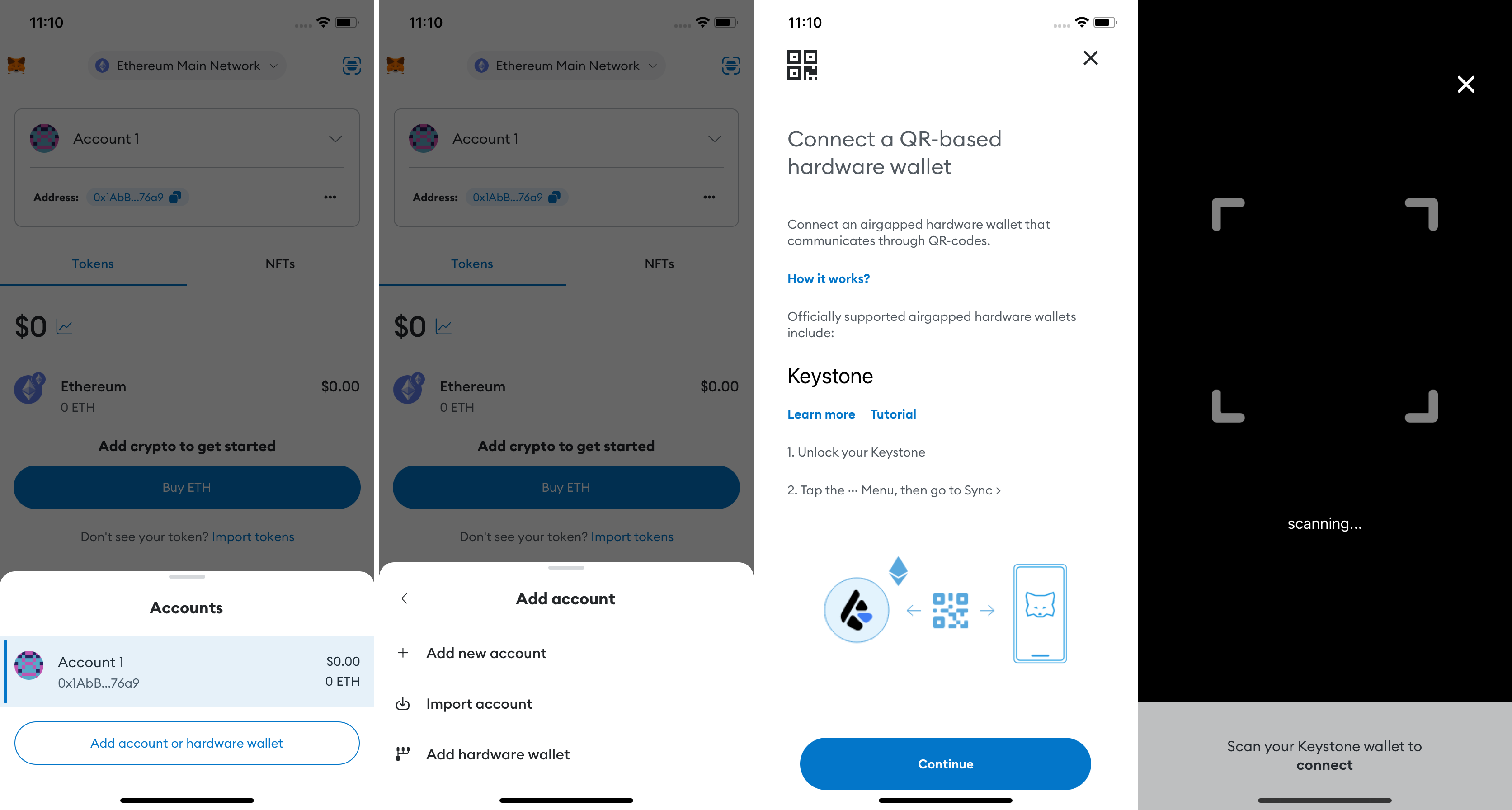 Step 2: Connect Keystone Hardware Wallet to MetaMask Mobile