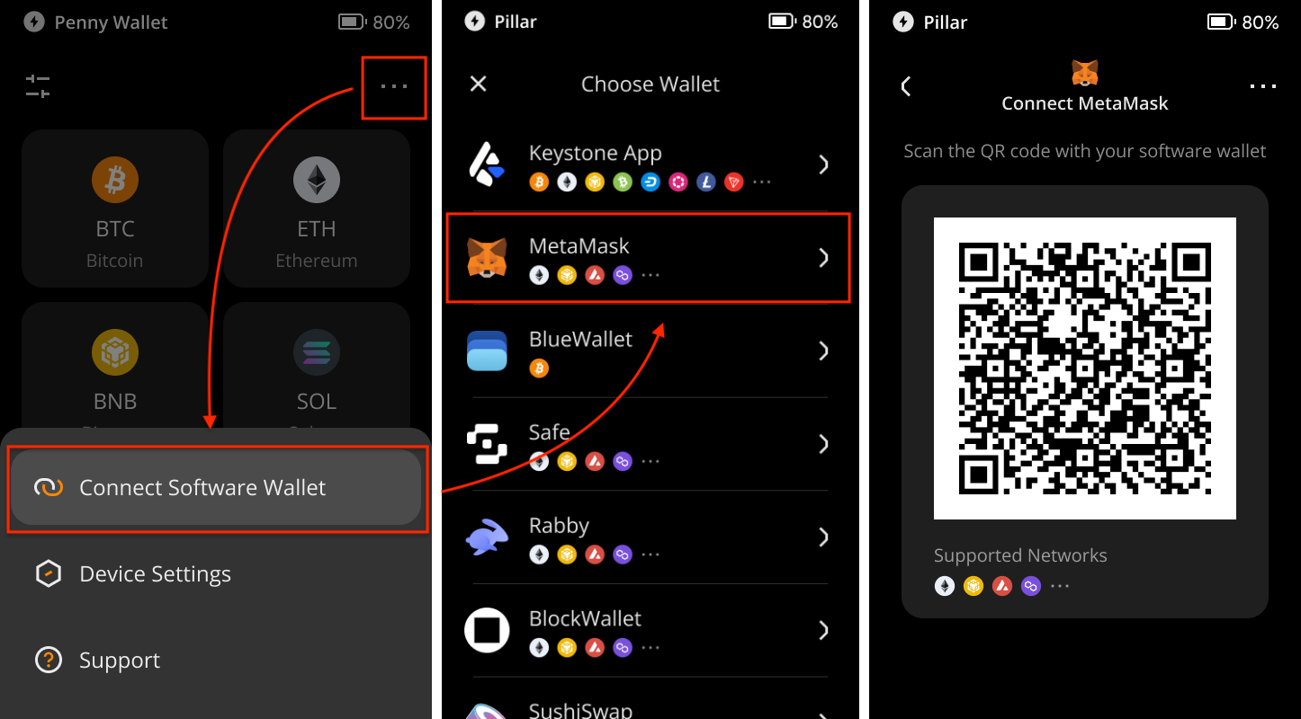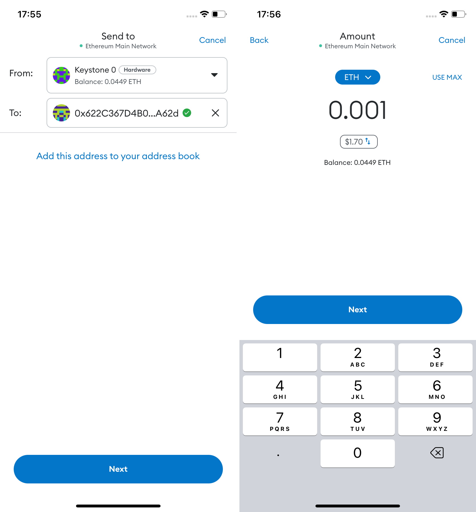 Keystone is the exclusive hardware wallet fully compatible with MetaMask Mobile, granting you access to all Ethereum Virtual Machine (EVM) chains, main cryptocurrencies, tokens, and decentralized applications on EVM chains.