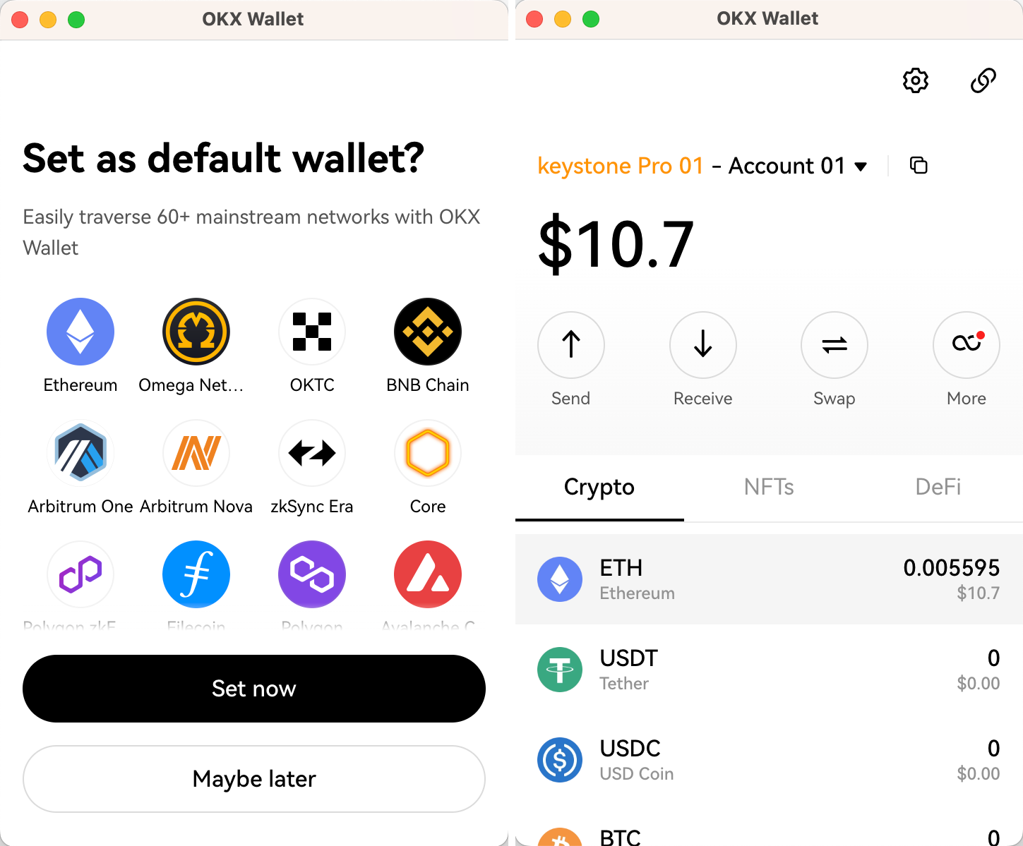 Welcome to the tutorial that will guide you through the process of connecting your Keystone hardware wallet with the OKX Extension. In this tutorial, you'll learn how to establish the connection and explore the fundamental features of OKX Wallet, including sending transactions and utilizing the decentralized exchange (DEX). Let's dive in!