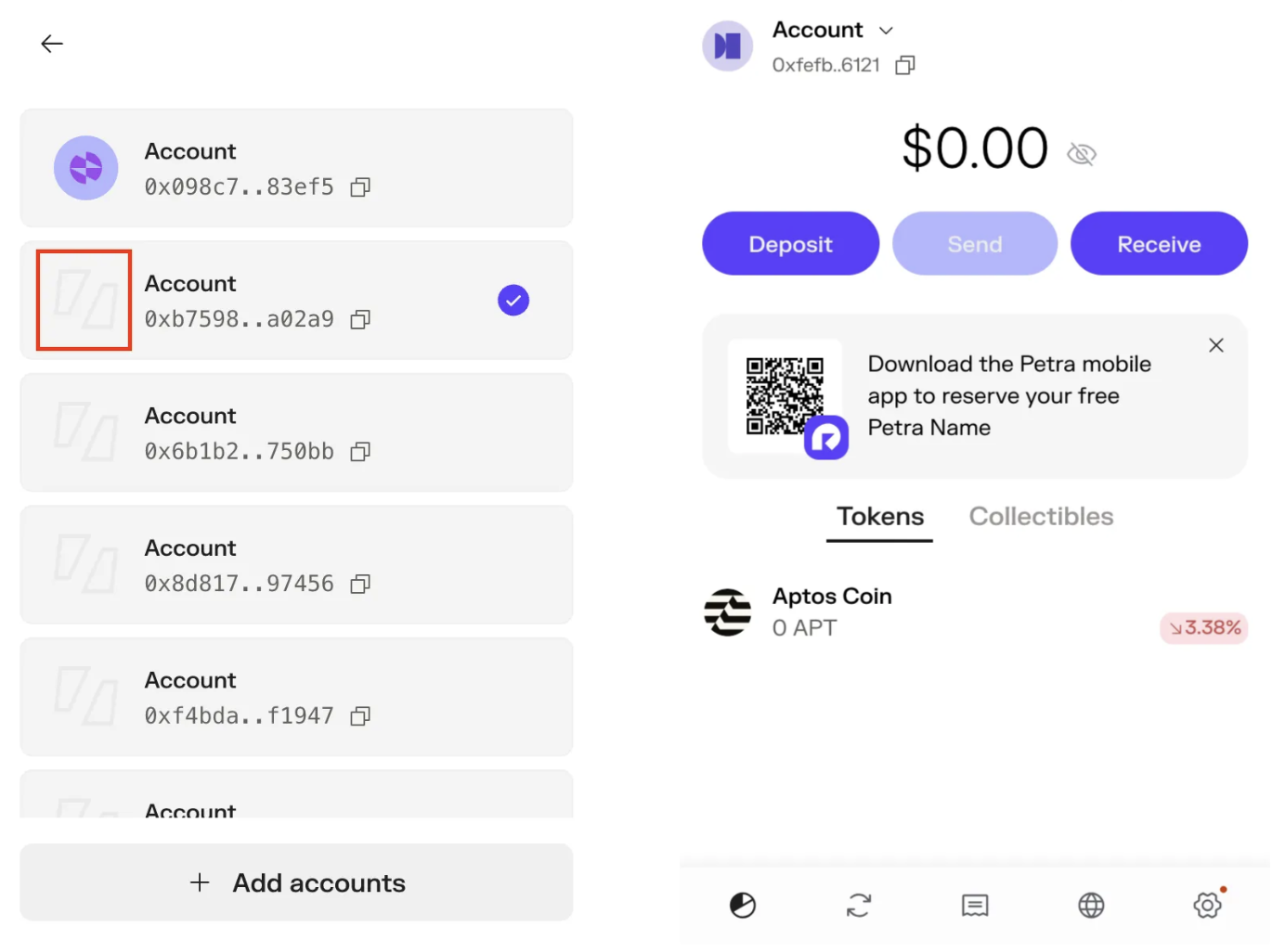 - Click your profile picture in the top-left corner of the Petra wallet main interface.