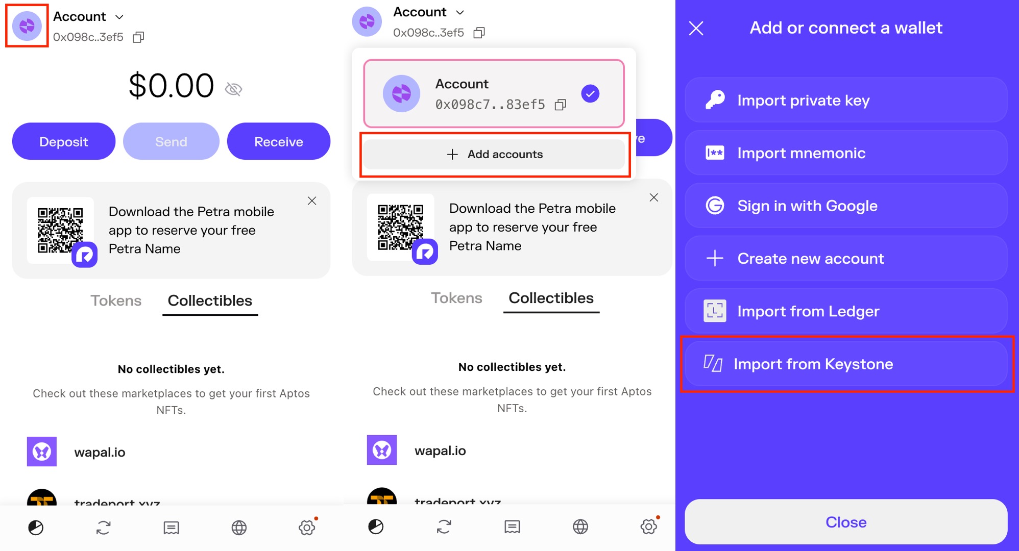 Step 2: Pair Petra Wallet with Your Keystone Hardware Wallet