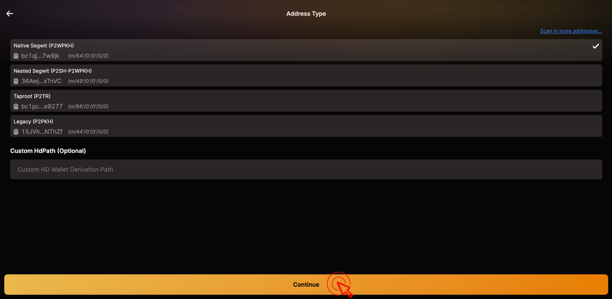 Choose address type and click [Continue].