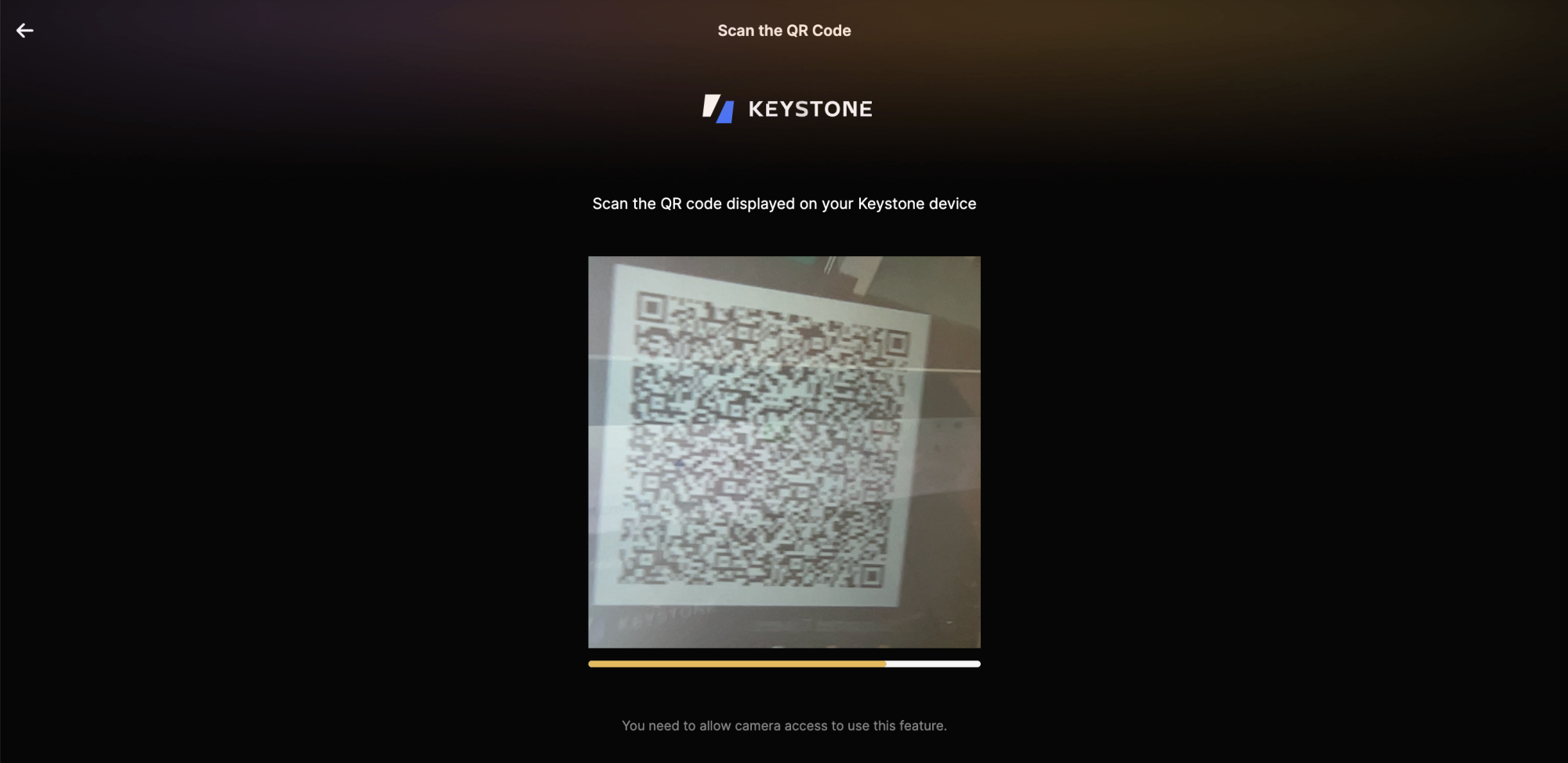 Scan the QR code generated by Keystone using your computer's camera.