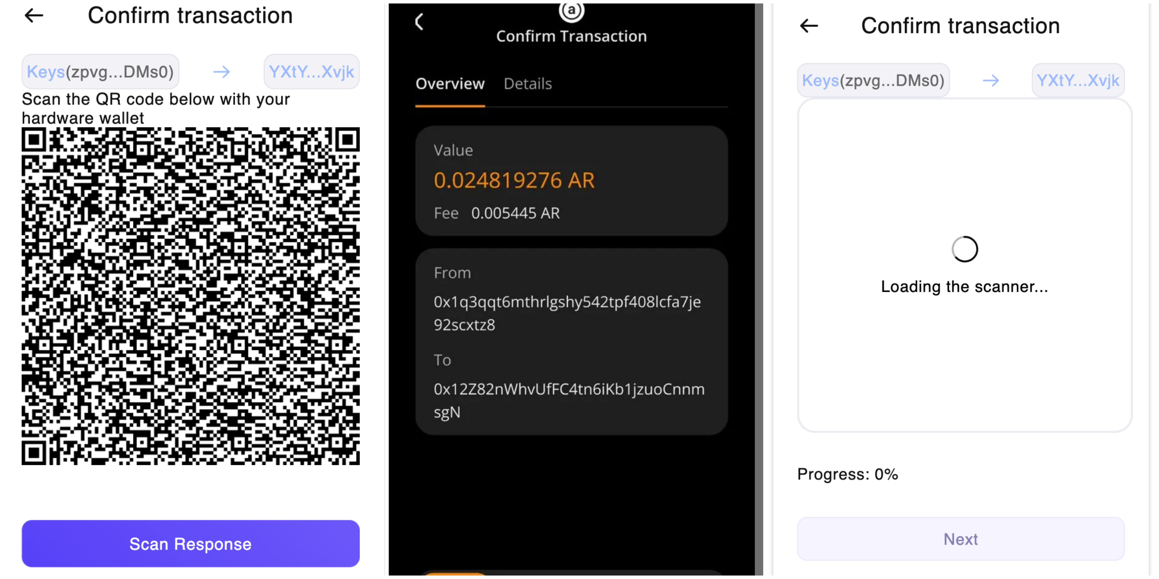 Return to Wander Wallet, click "Scan Response," and scan the QR code generated by the Keystone page to complete the transaction.