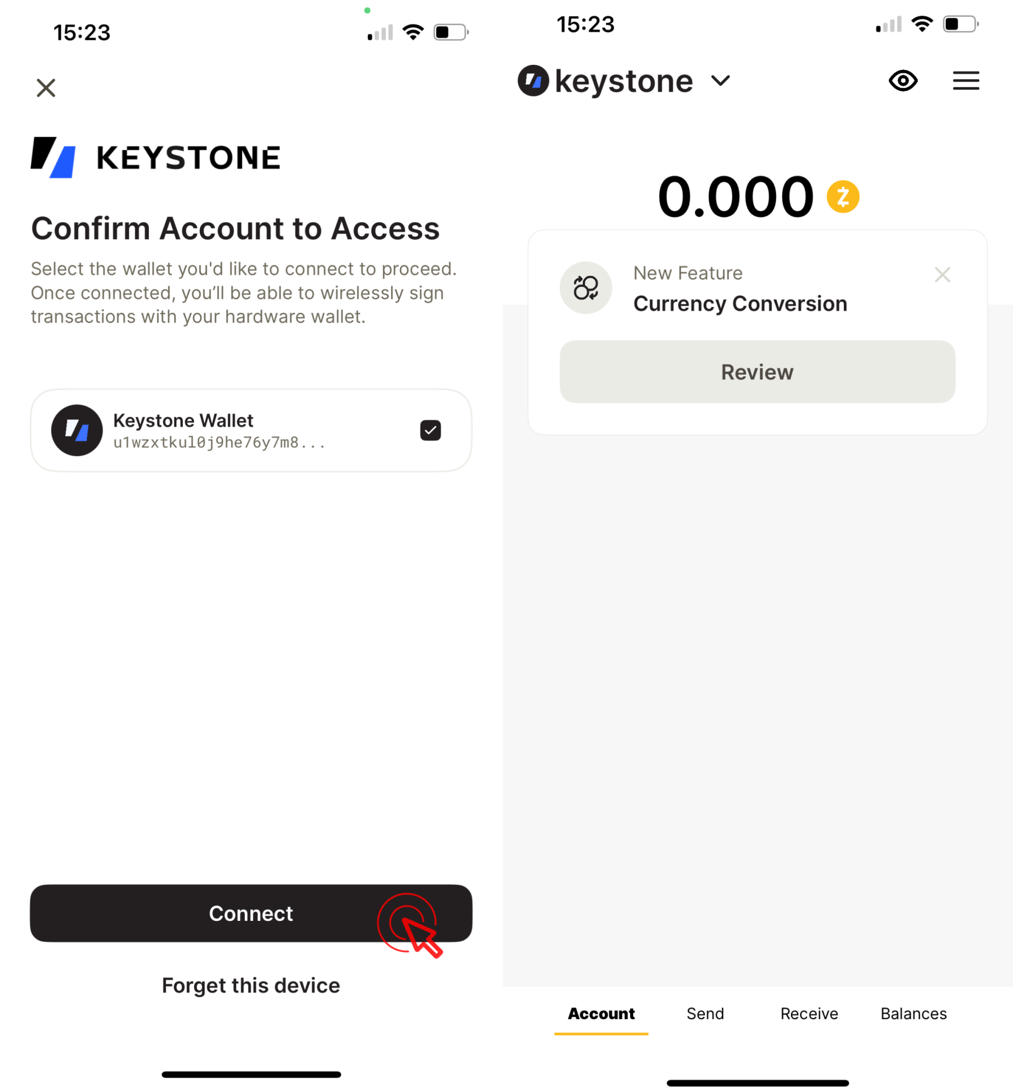 Click [Connect]. Connect Keystone with Zashi Wallet successfully!