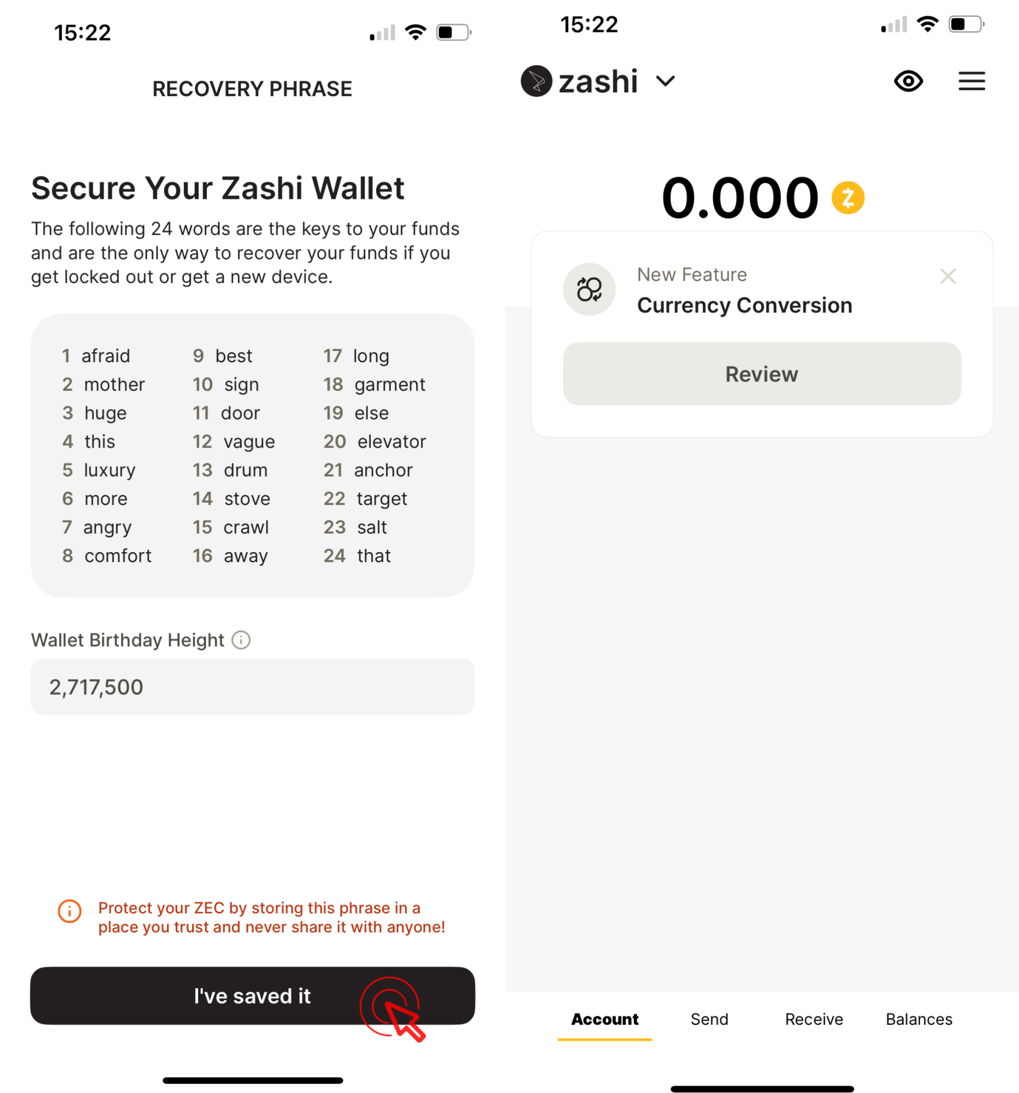 - Zashi Wallet installed on your mobile phone.