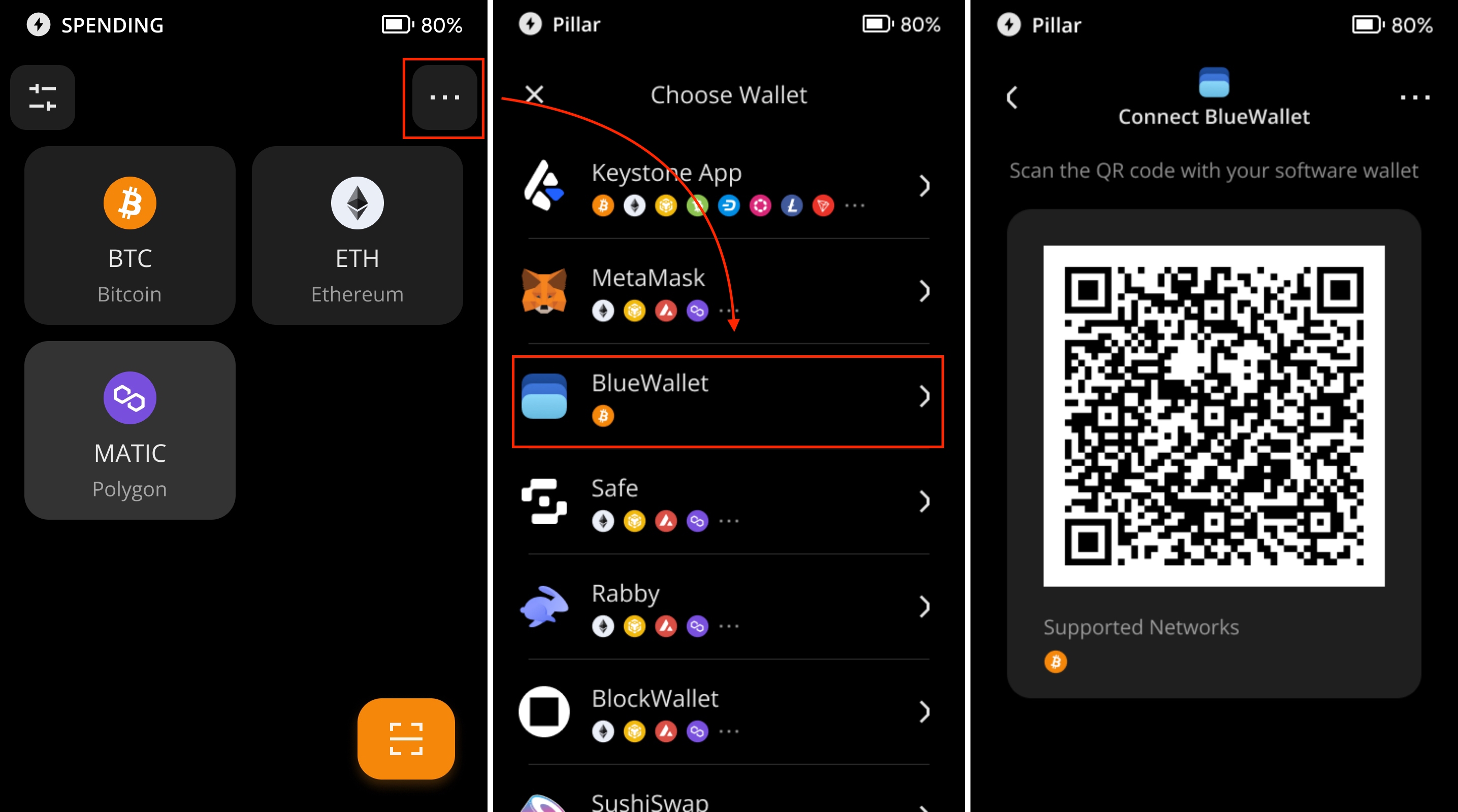扫描显示在您的Keystone硬件钱包上的二维码。