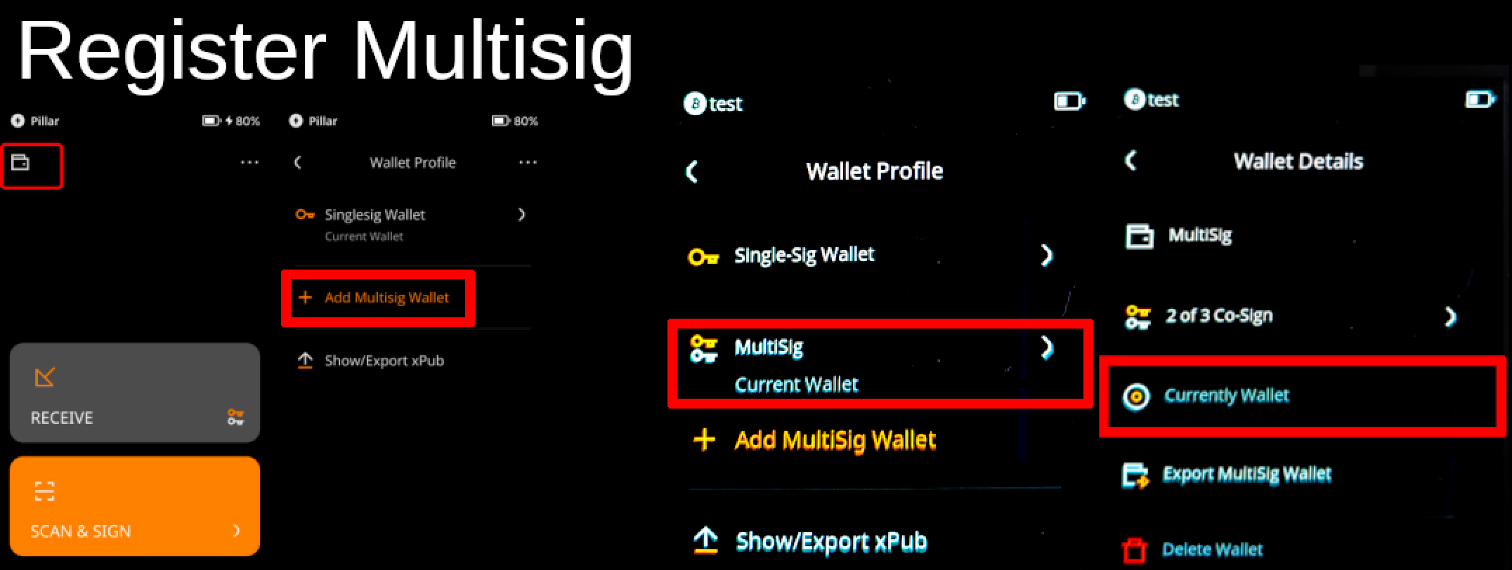 扫描 Keystone 展示的扩展公钥将 Keystone 作为多签的一个签名方,保存多签钱包。