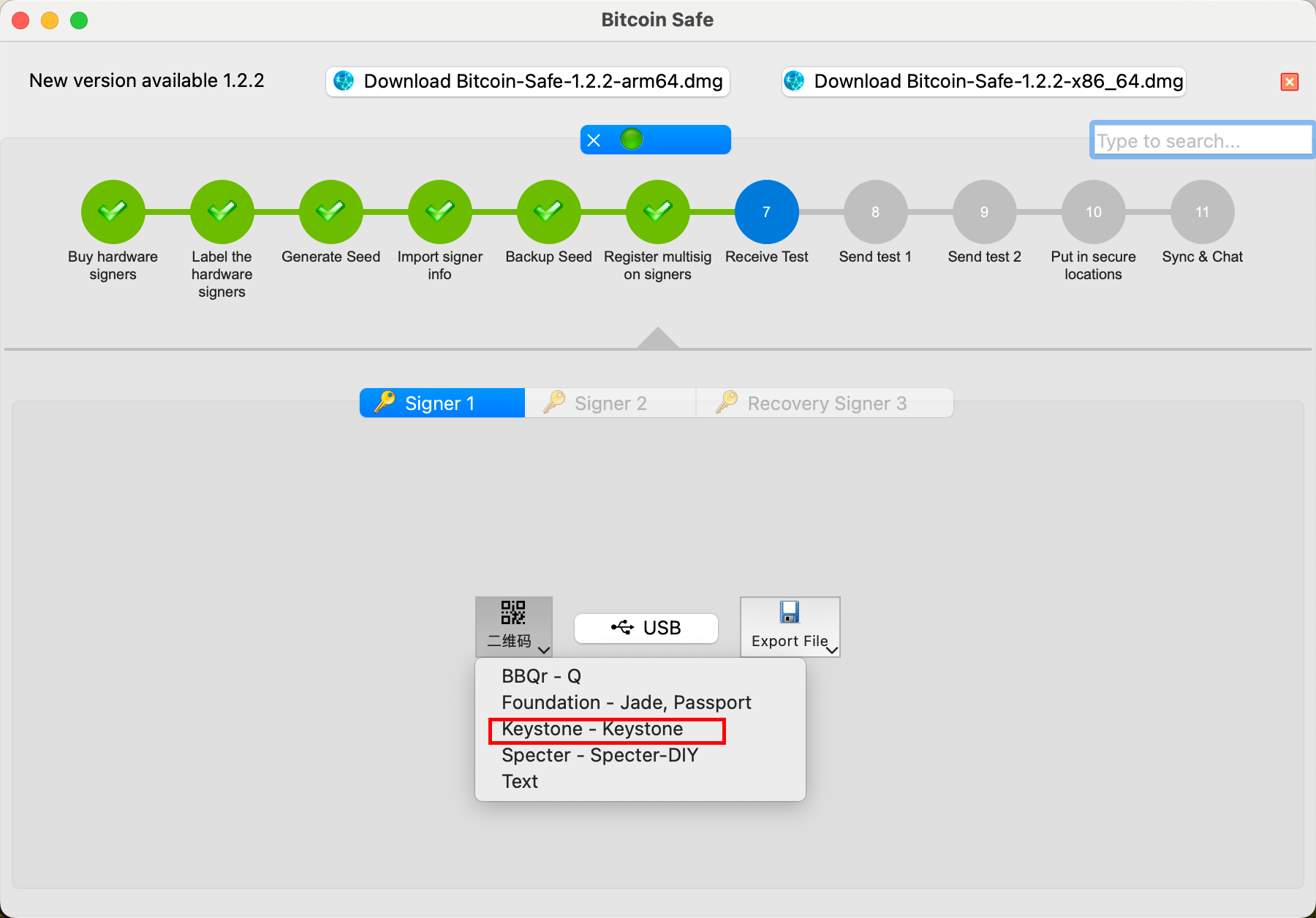 二、将 Keystone 与 Bitcoin Safe 连接