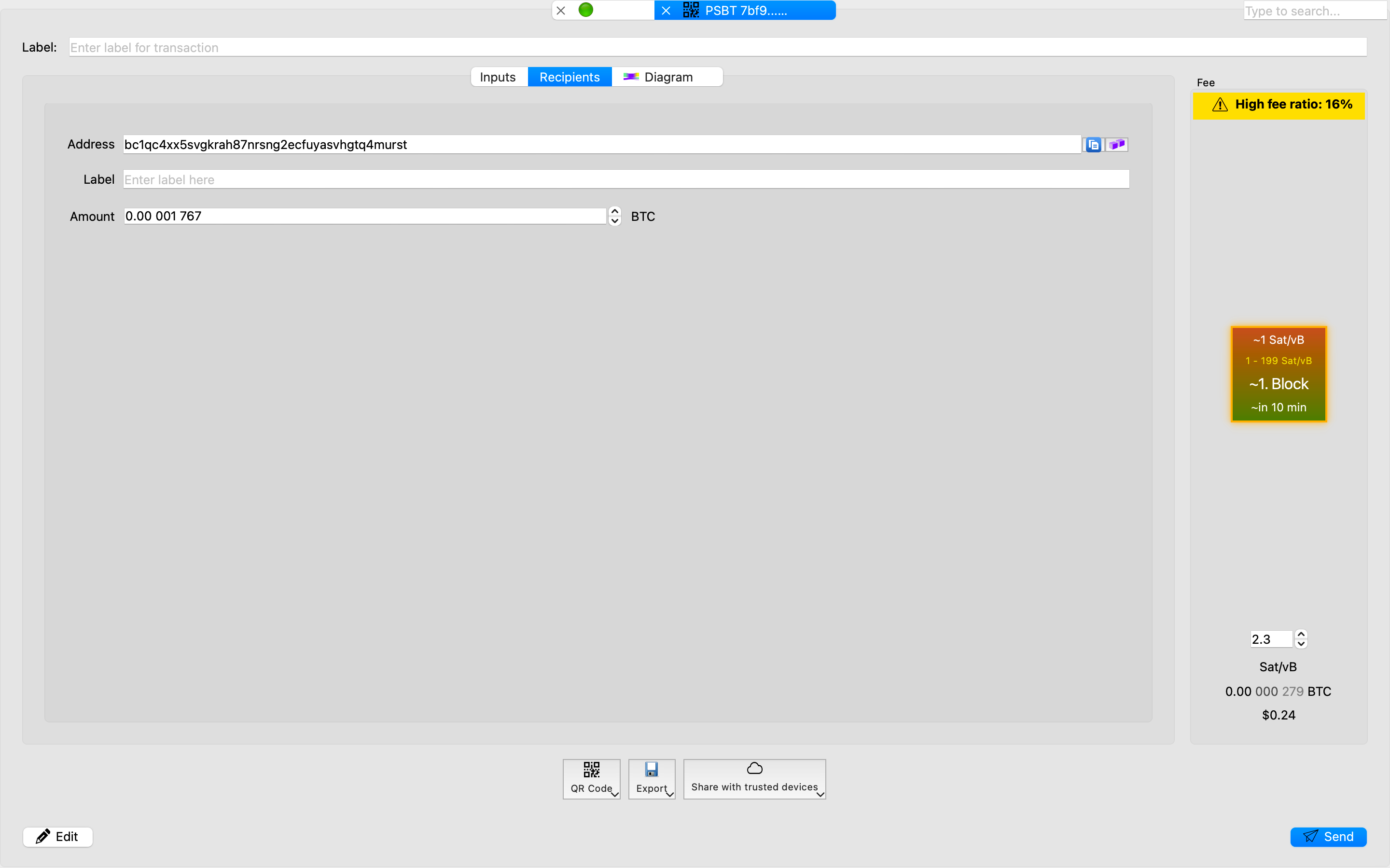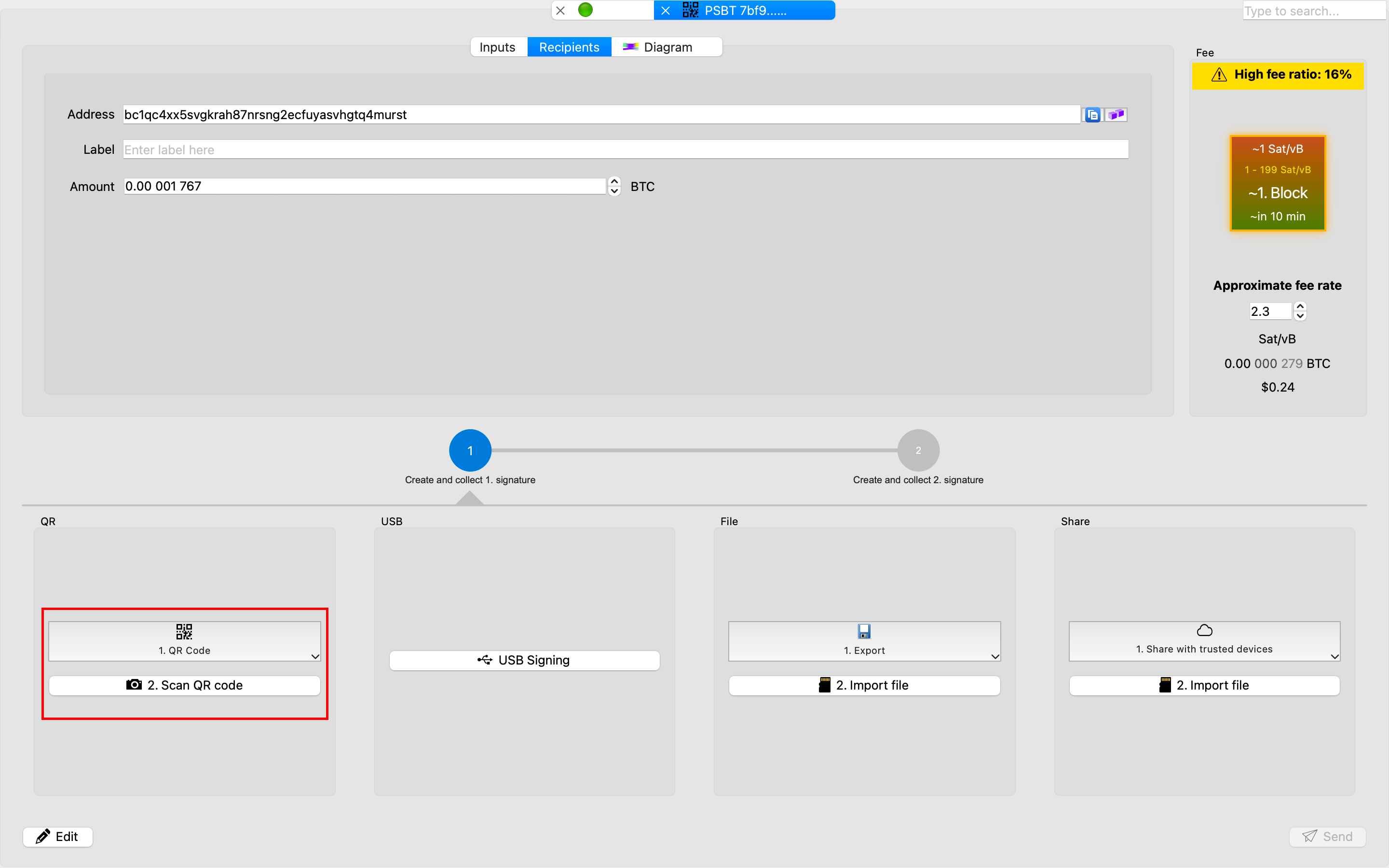 在 Bitcoin Safe 钱包上: