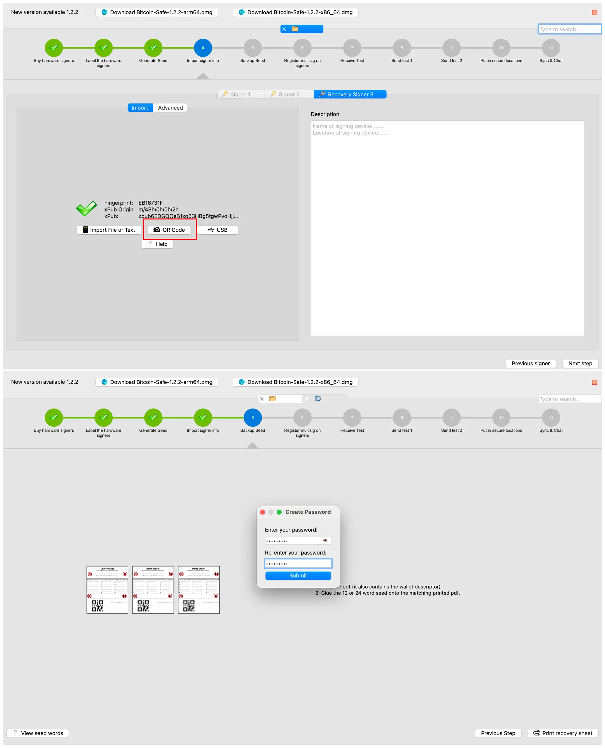 Notice:Bitcoin Safe需要先创建一个账户后才能进行钱包导入,本教程中已包括此过程的指导。