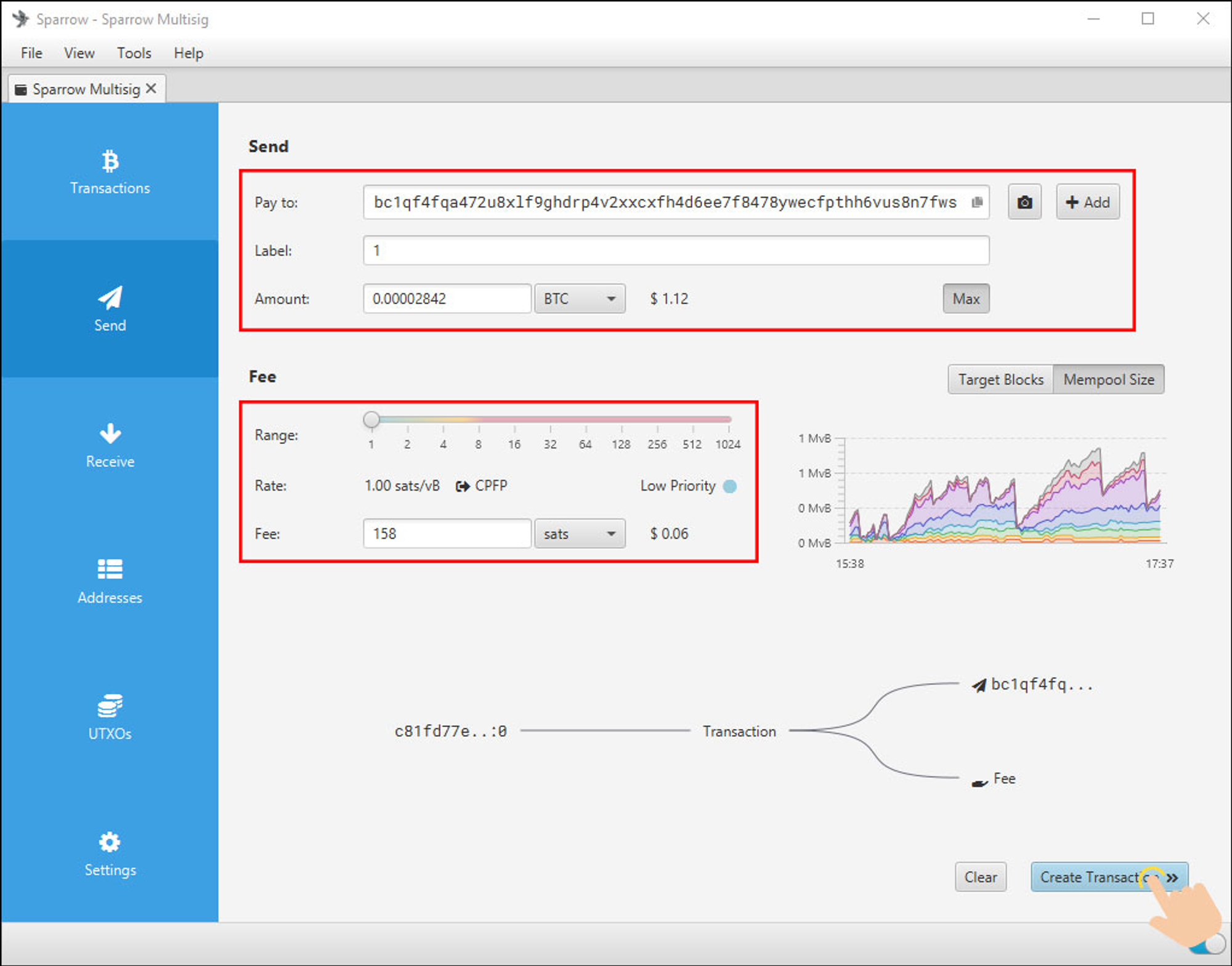 1. 在 Sparrow 上创建一笔BTC交易