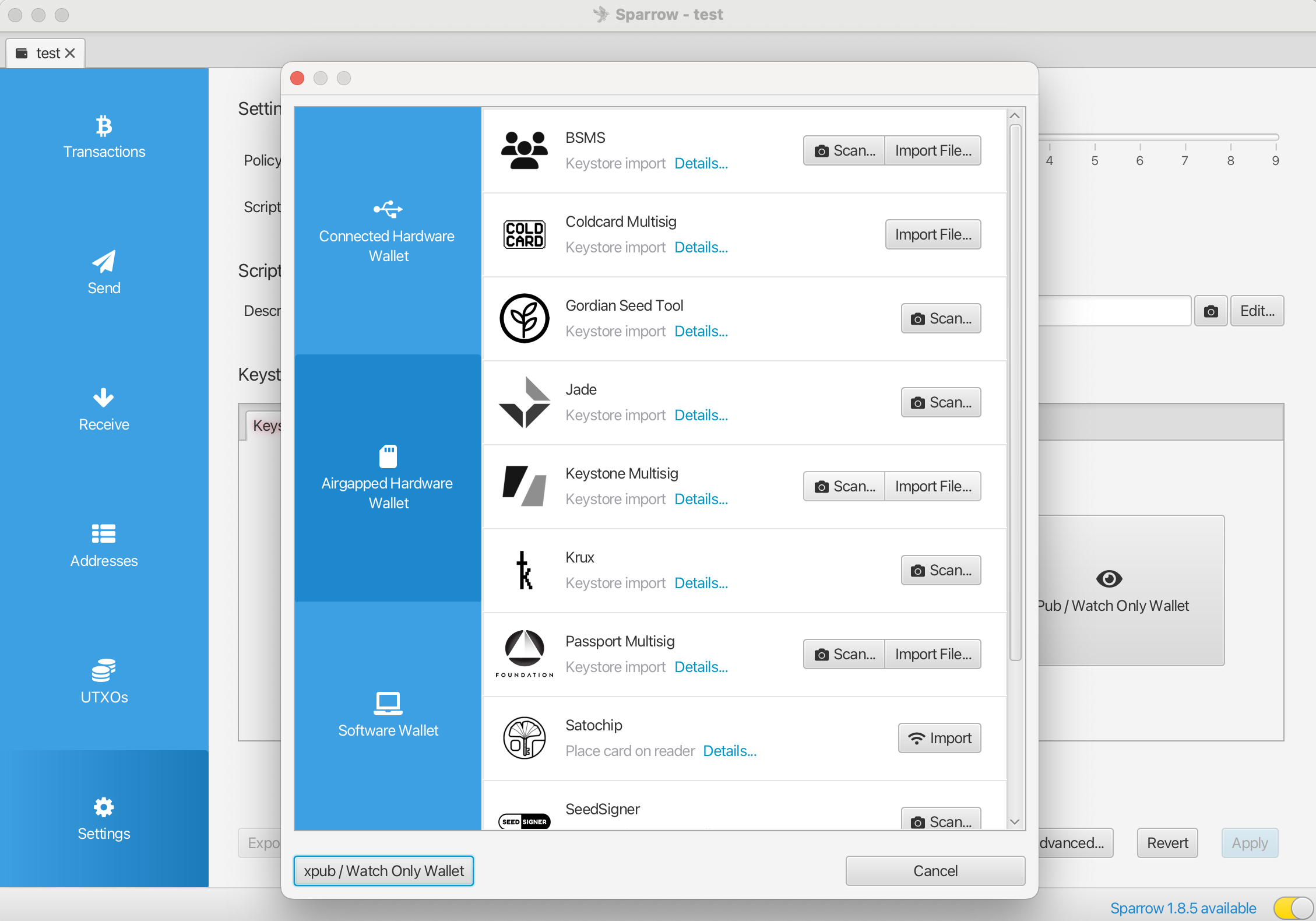 本教程将以 Sparrow 举例创建2-2多签名钱包为例,介绍两种将 Keystone 3 Pro 导入软件钱包作为多签名钱包一方的两种方法:二维码或 microSD 卡导入。