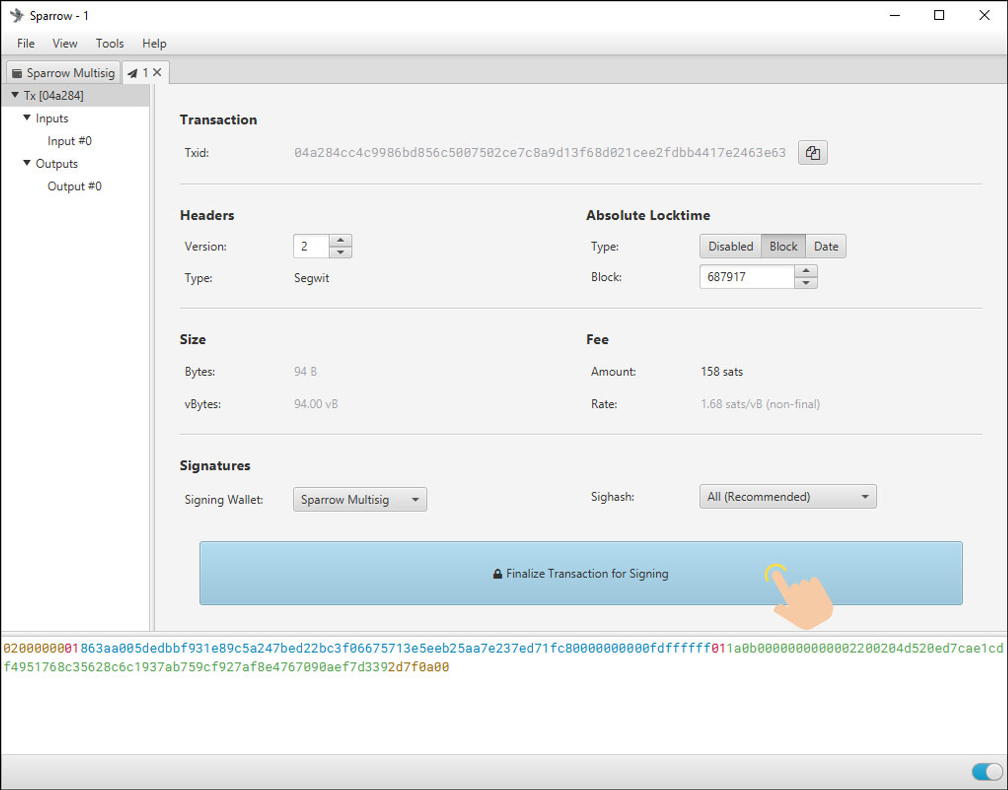点击 [为签名交易最终化]。