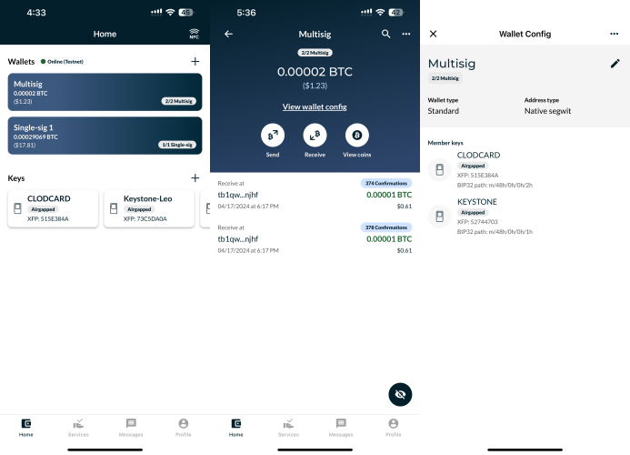 - Keystone 钱包升级到V1.1.0 (BTC-Only) 或以上单币种固件版本,作为第一个多签参与方1/2。