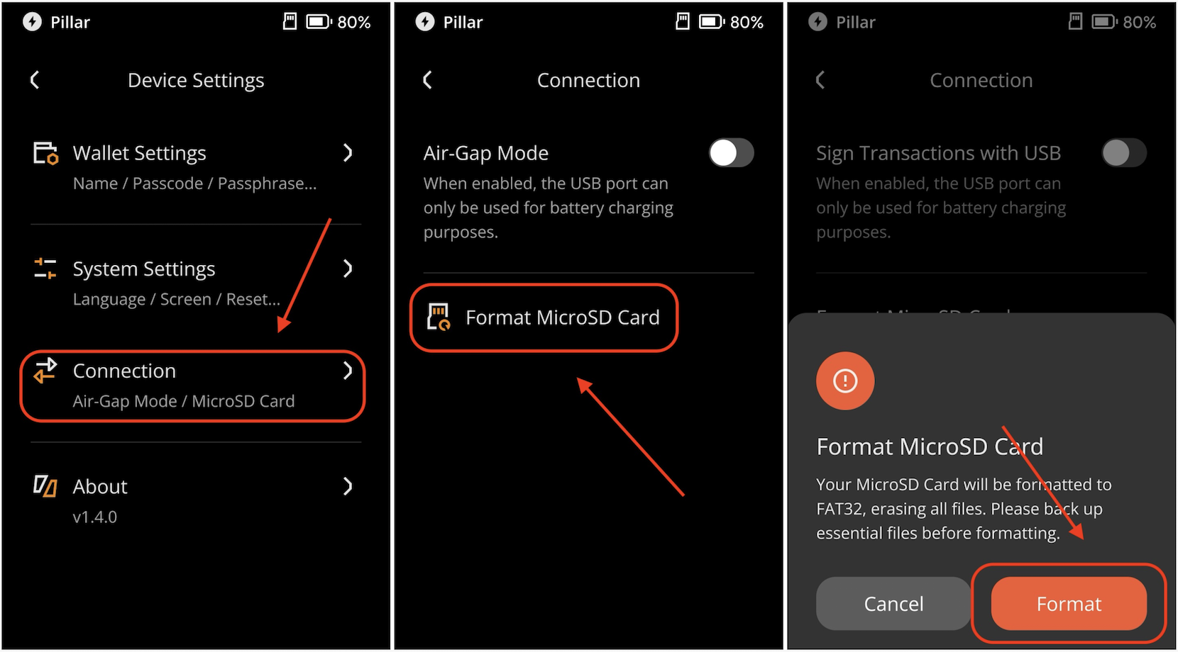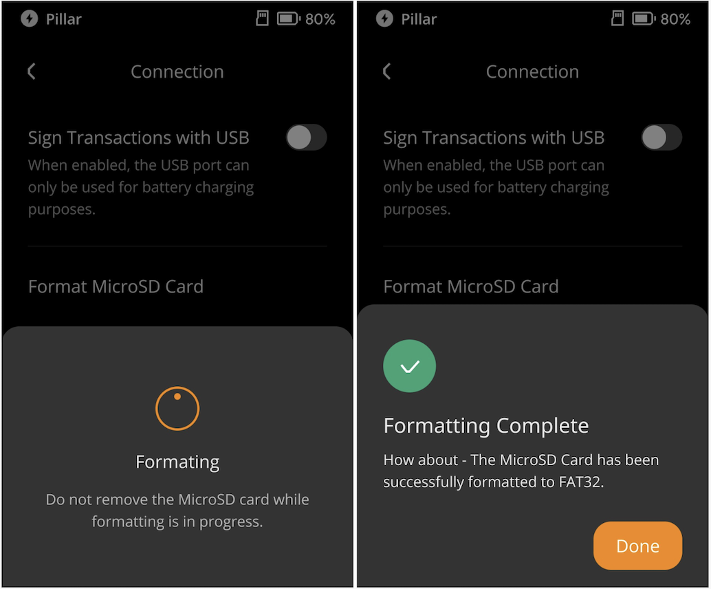 Keystone(固件版本1.4.0及以上)具有将 MicroSD 卡格式化为 FAT32 的功能。