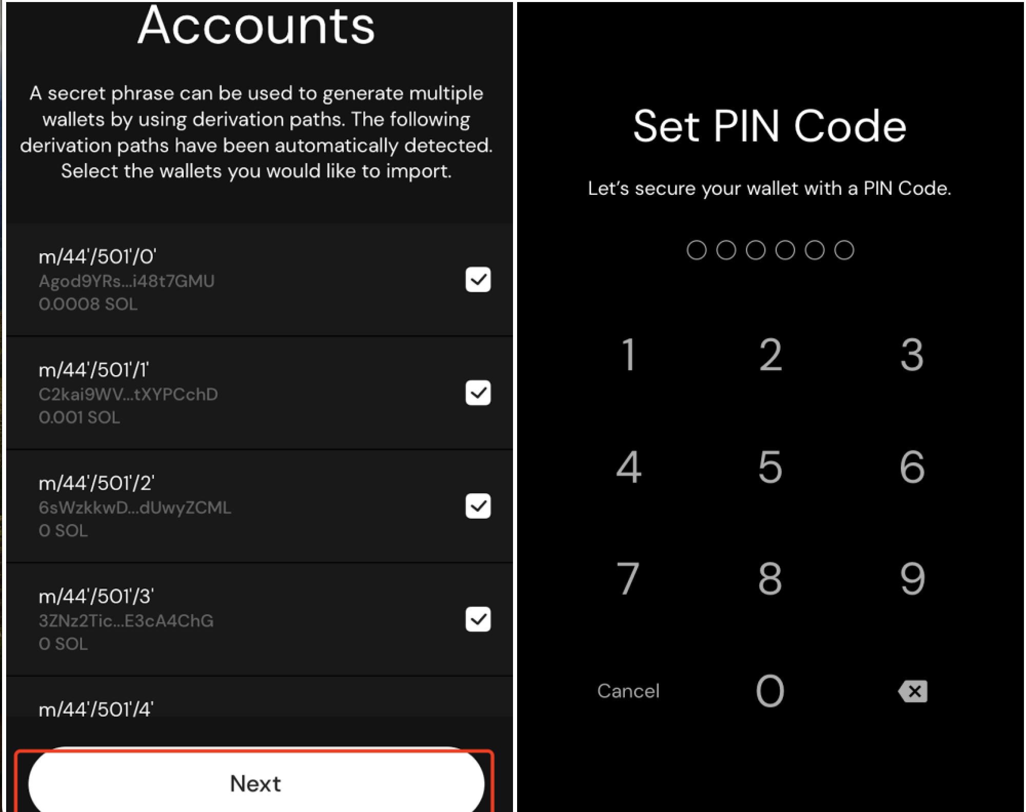 扫描后,选择需要的账户点击 ”Next” 进行连接并为钱包命名。