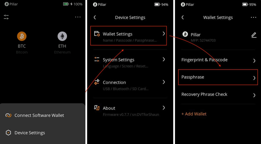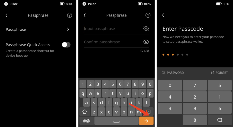 注意: Keystone 3 Pro不会储存这个密语,因此每次访问密语钱包时都需要输入它。
