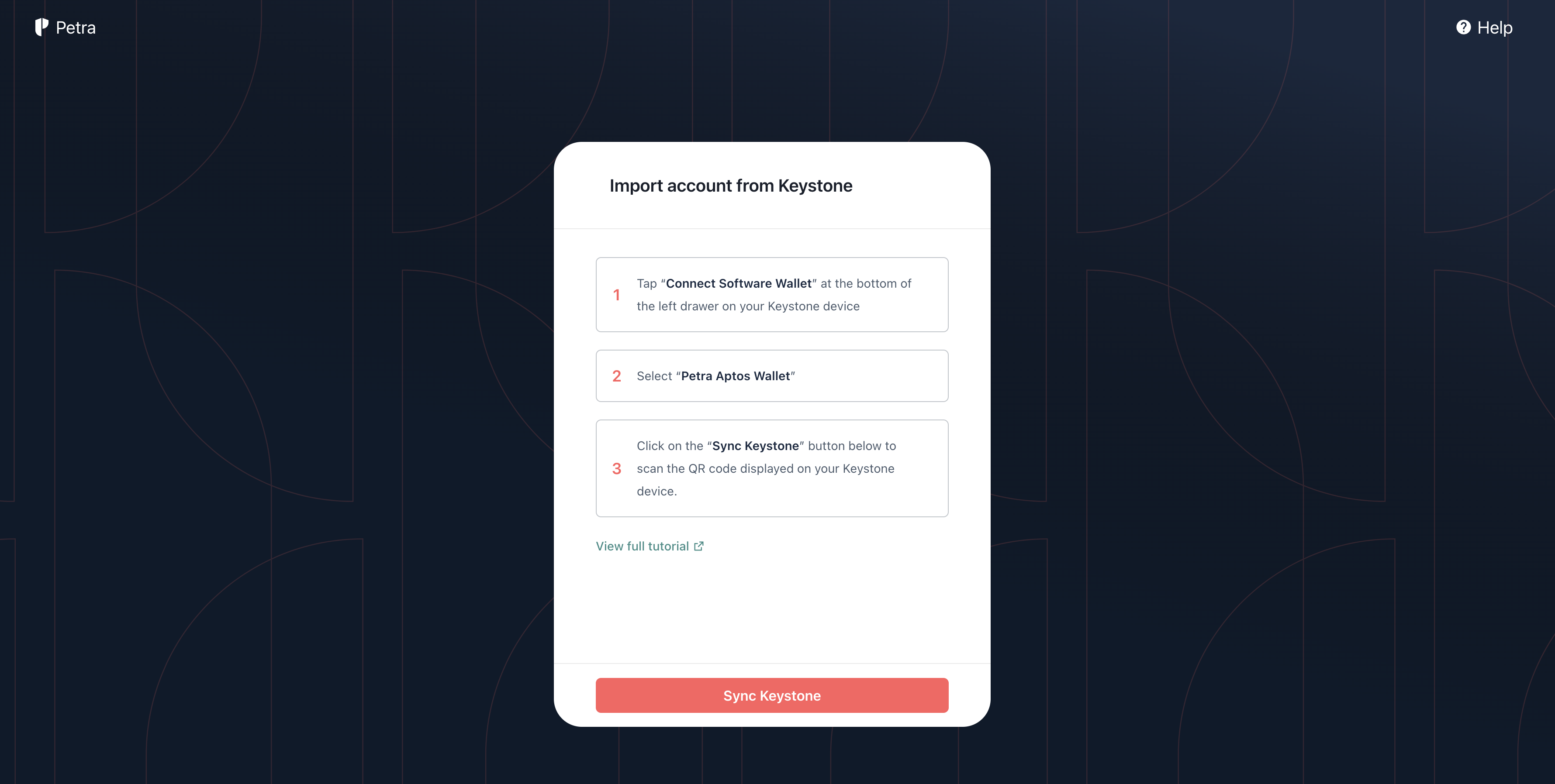 步骤2:绑定 Petra 与您的 Keystone 硬件钱包