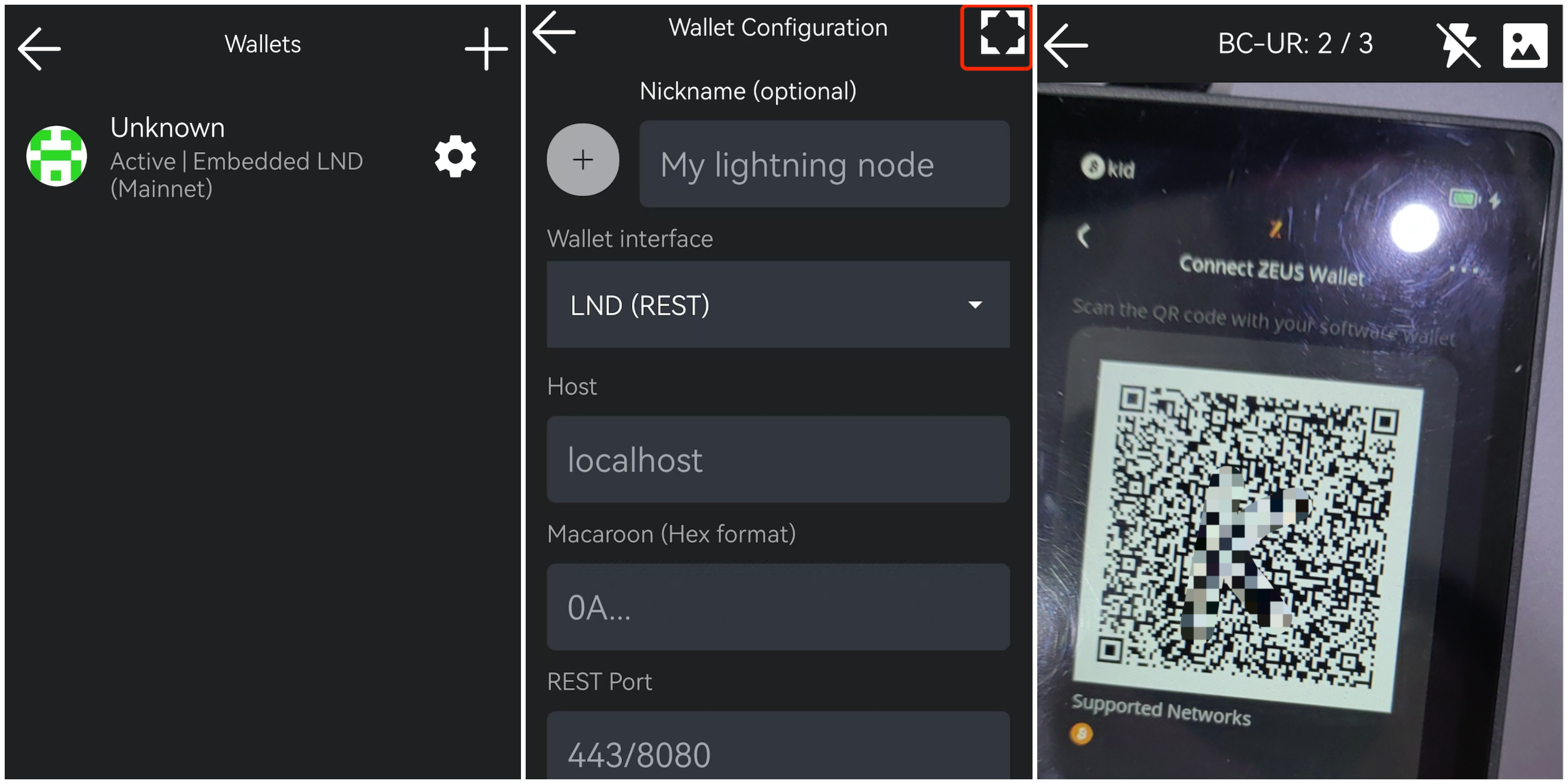 Tip: 您需要先拥有一个 Zeus 的钱包,才能在第二个钱包上连接 Keystone。如果您已经拥有 Zues 的钱包,您可以直接进入第二步
